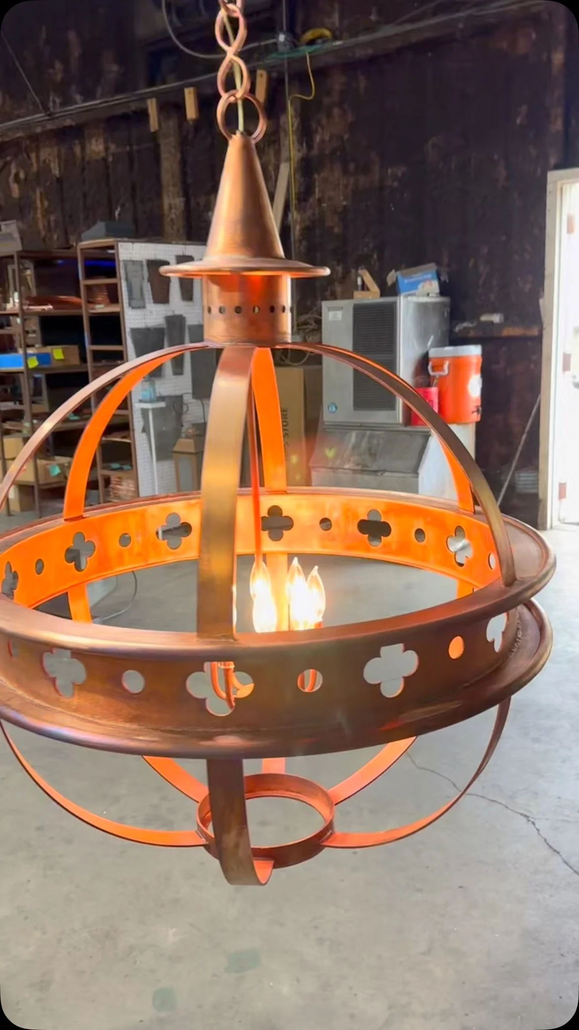 View fullsize Our beautiful Vulcan Series with a three bulb candelabra base.  Please let us know if you have a need for electric or gas copper  lanterns.  #lowcountrylanterns #copperlighting #copperlanterns #outdoorlighting #madeinusa #handcrafted #charlestonsc