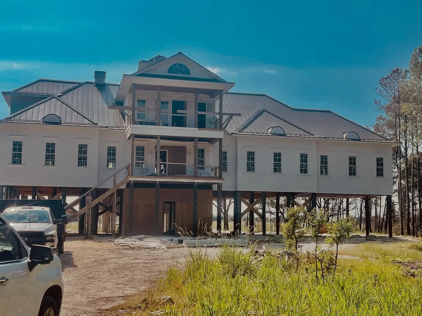 View fullsize Out on-site today finalizing the lantern layout for this beautiful coastal build on Pawleys Island.  #lowcountrylanterns #copperlanterns #copperlights #customhomes #outdoorlighting #riverhouse #pawleysisland #charlestonsc #lighting #buylocal