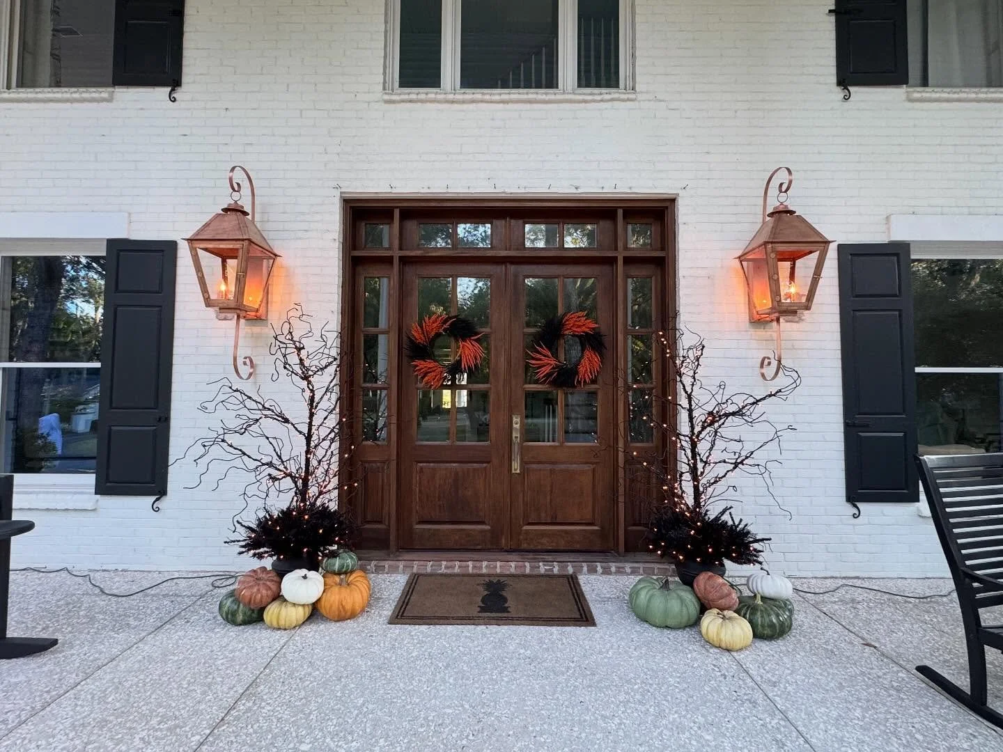 Halloween ready thanks to LowCountry Lanterns! πŸŽƒ#lowcountrylanterns #copperlanterns #gaslanterns #frontporchdecor